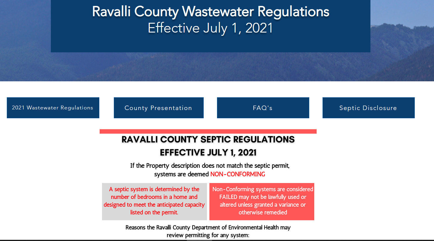 To learn more about how the Missoula Organization of REALTORS®, in collaboration with the Bitterroot Valley Board of REALTORS®, is helping to educate residents about the new rules governing residential property wastewater systems in Ravalli County, contact Dwight Easton, Public Affairs Director, at deaston@missoularealestate.com or 406.728.0560.