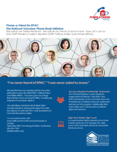 Phone-a-Friend for RPAC leverages the power of member-to-member outreach to contact non-investing members, educate them about RPAC and ask for an investment.